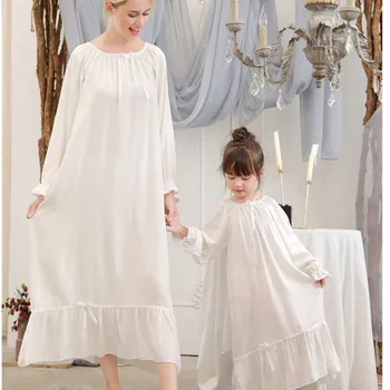 כותונות לילה תואמות לאם ולבת וכותנה, שרוול ארוך בעיצוה מתוק מדבש בצבע לבן או ורוד