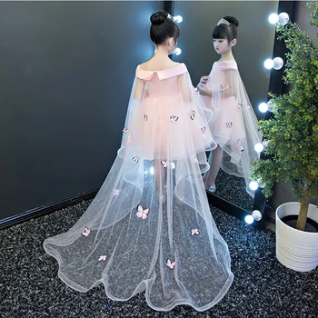 שמלת יום הולדת טול קומות לילדות עם תחרה אלגנטית, ללא שרוולים, שילוב של סטין וכותנה, 4 צבעים לבחירה