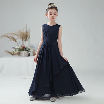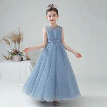 שמלת ערב לילדות לאירועים חשובים מאוד מרשימה ואיכותית, בצבע תכלת אורך קרסול ללא שרוולים, 4 שכבות, סרט סטין במותן - מהממת