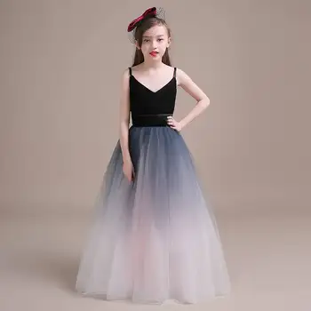 שמלת ערב כתפיות מיוחדת ארוכה לילדות, רעננה, ומרשימה, רוכסן אחורי, פוליאסטר וספנדקס