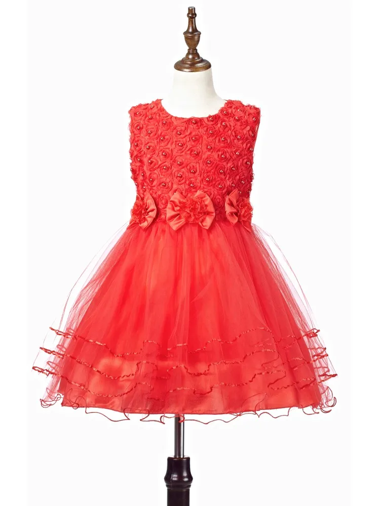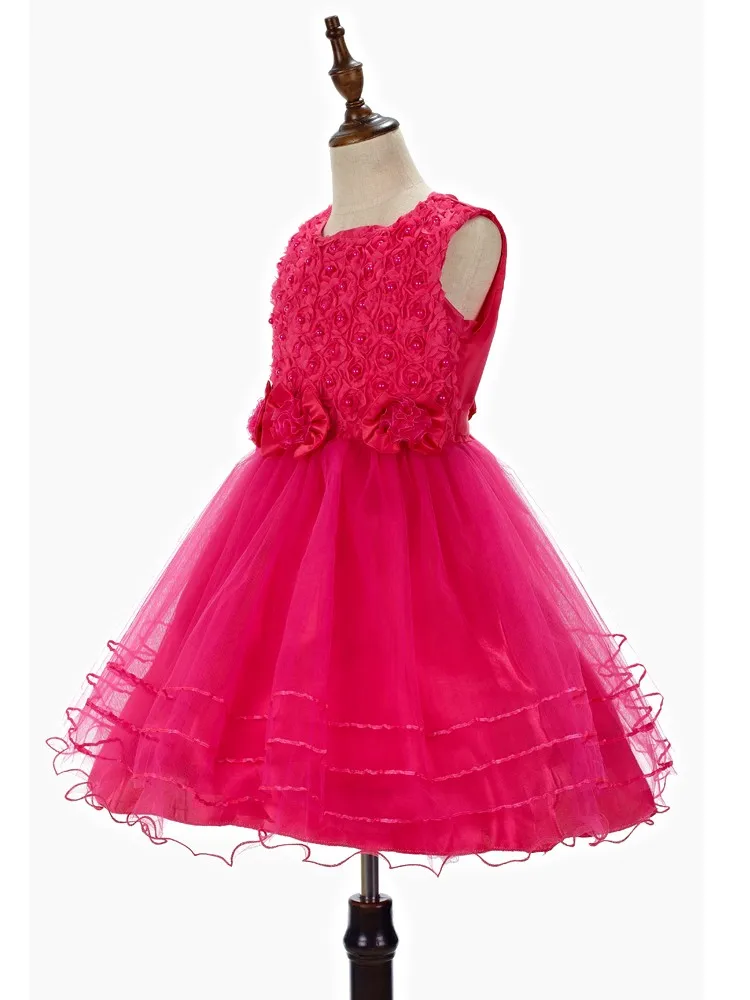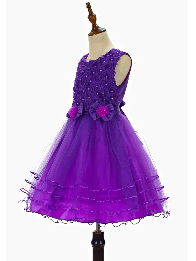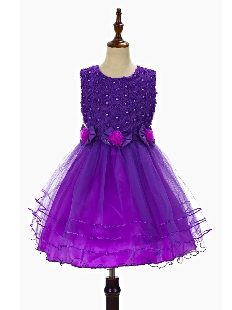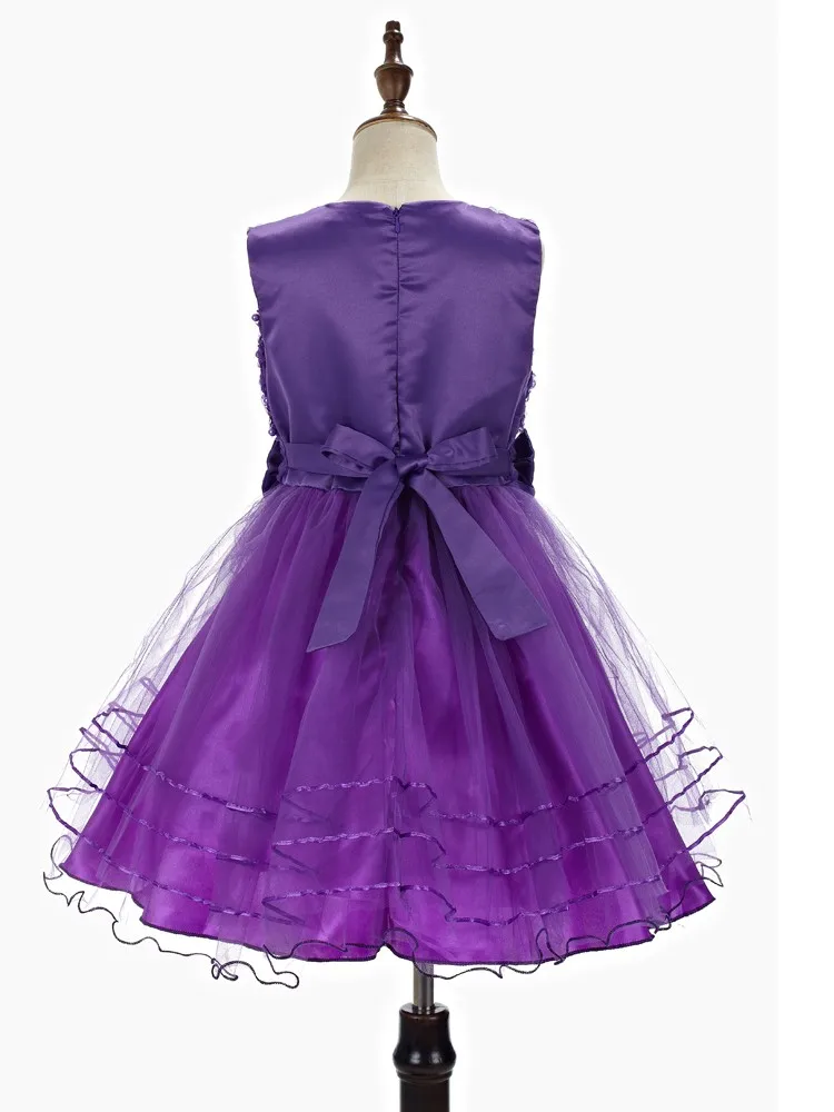 מק"ט: 32695507594שמלת כלה או יום הולדת לילדות עם קישוטי חרוזים, תחרה ופרחים במותניים בצבעים סגול, לבן, ורוד ואדום. מדהימה!