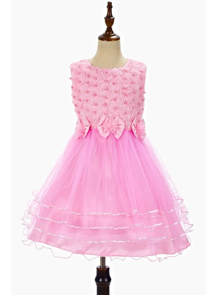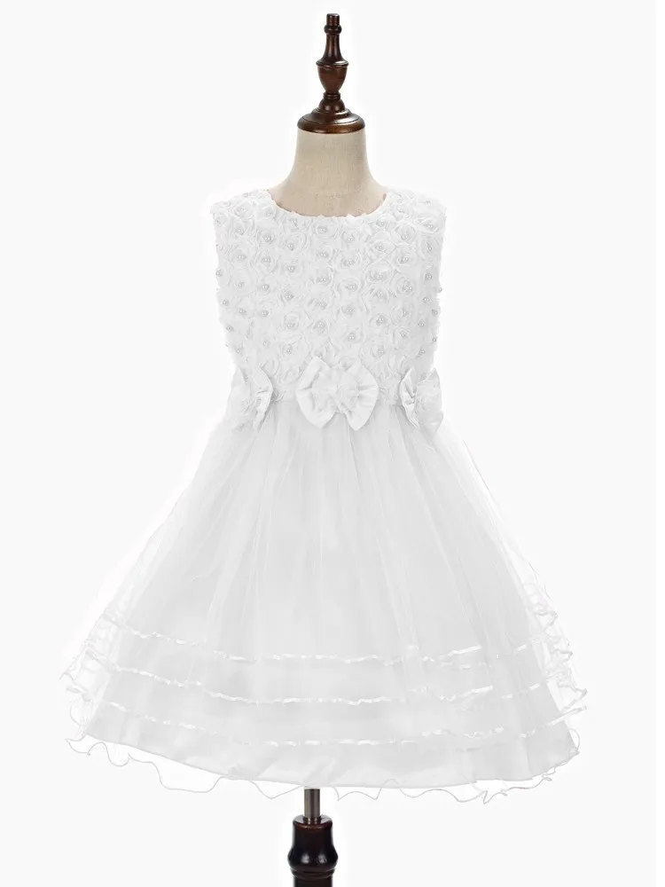 שמלת קומות מדהימה לילדות עם פרחים וסרט מותן 4 שכבות של איכות ויופי