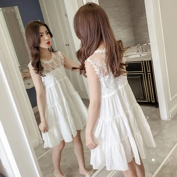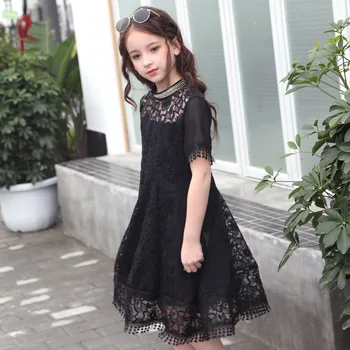 שמלת ברך תחרה לילדות מכותנה בצבעים שחור או לבן ללא שרוולים בשילוב תחרה מדהימה