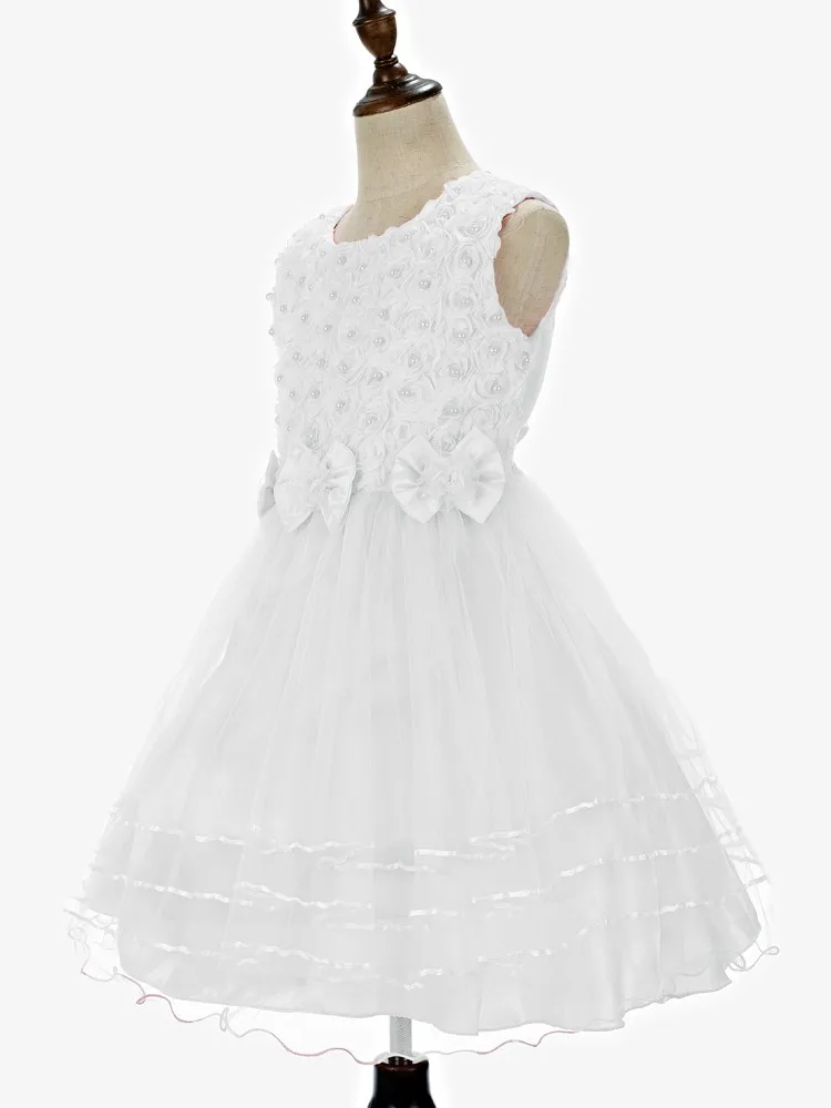 שמלת כלה לילדות עם פנינים מהממות ופרחים רקומים + טול ארוך מהמם נפרד