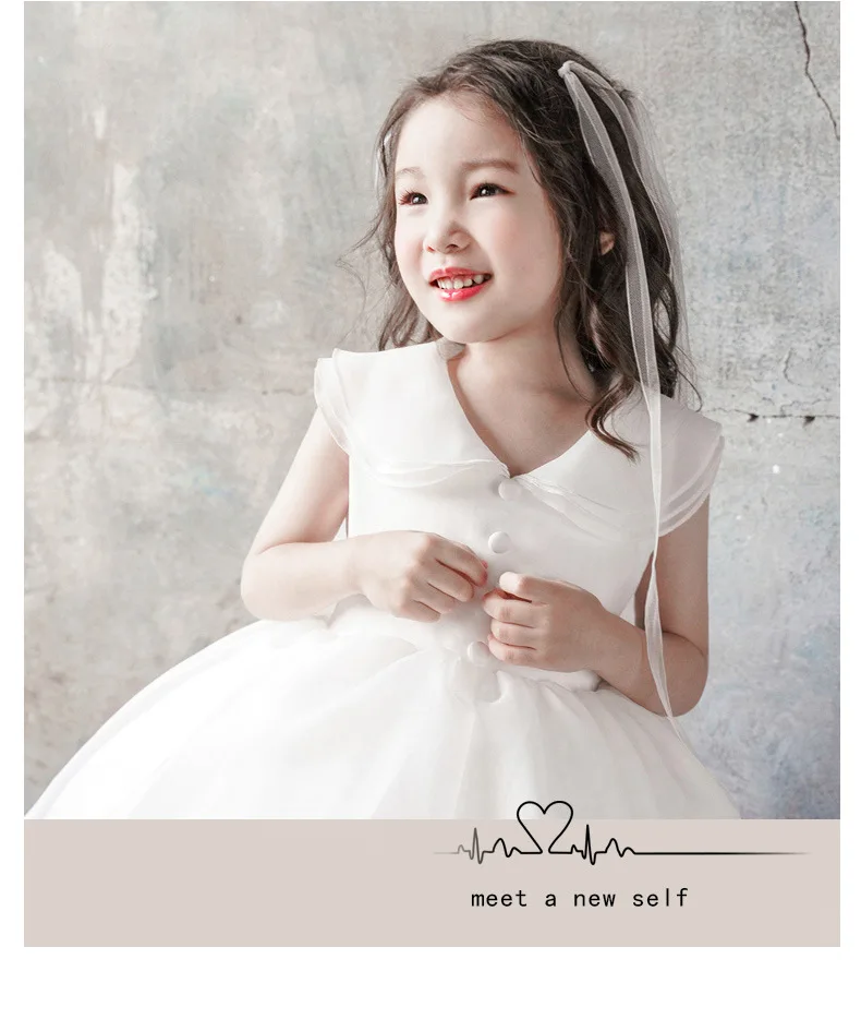 שמלת כלה רקומה מהממת לילדות ללא שרוול עם רוכסן אחורי 3 שכבות