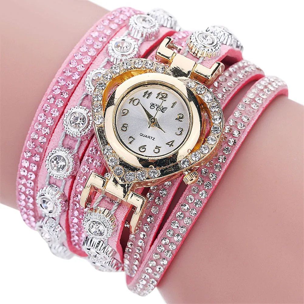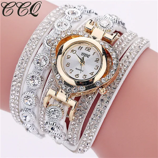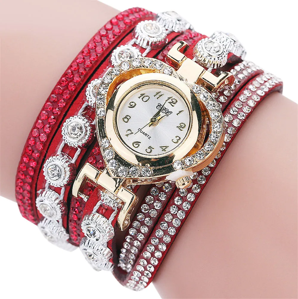 מק"ט: 4000329527439שעון יד צמיד לילדות משובץ יהלומים וקריסטלים בצורת לב – 10 צבעים לבחירה